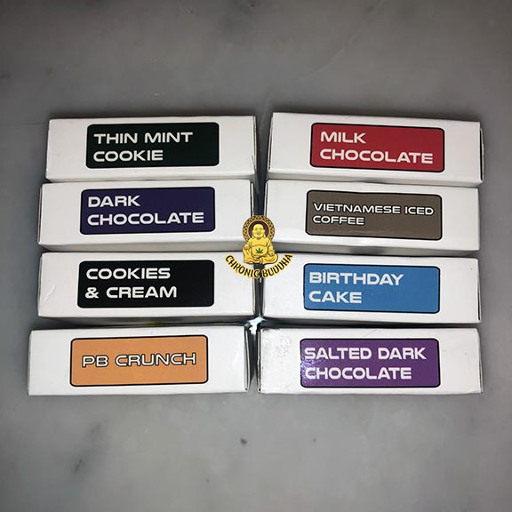 TKO Edibles Chocolate Bar 315mg Flavors: Thin Mint Cookie, Dark Chocolate, Cookies & Cream, PB Crunch, Milk Chocolate, Vietnamese Iced Coffee, Birthday Cake, Salted Dark Chocolate.